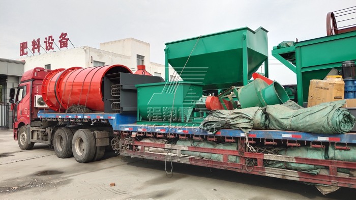 肥料生產(chǎn)設(shè)備廠家程翔重工本次發(fā)貨為年產(chǎn)5萬噸的豬糞有機(jī)肥加工成套設(shè)備,主要的有機(jī)肥生產(chǎn)設(shè)備有:液壓槽式翻堆機(jī)、鏟車喂料機(jī)、半濕物料粉碎機(jī)、臥式攪拌機(jī)、平模擠壓造粒機(jī)、滾筒烘干機(jī)、冷卻機(jī)、滾筒篩分機(jī)、自動包裝秤等等。由于肥料加工設(shè)備較多,因此分為兩車裝貨。