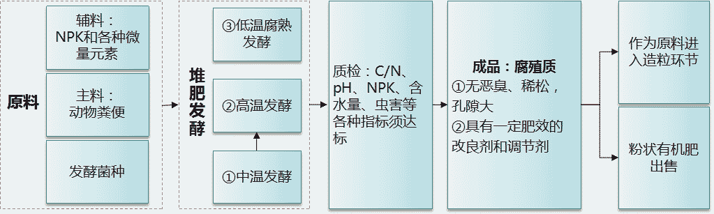 年產(chǎn)3萬(wàn)噸的牛糞有機(jī)肥生產(chǎn)工藝流程:
