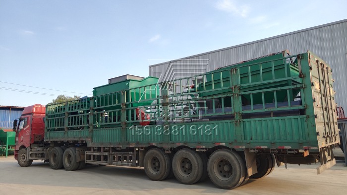 牛糞有機(jī)肥加工成套設(shè)備裝車完成,正在廠區(qū)門口進(jìn)行最后的清單檢查。