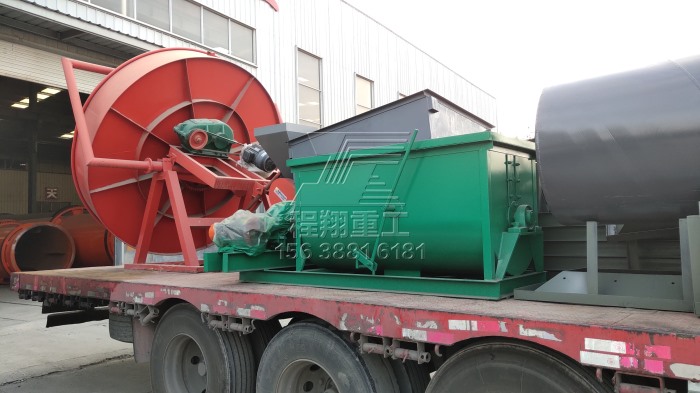 查看 > 01 2021/03本次發(fā)貨的豬糞有機(jī)肥生產(chǎn)線主要設(shè)備有:鏟車喂料、臥式攪拌機(jī)、有機(jī)肥濕法造粒機(jī)、滾筒篩分機(jī)以及烘干設(shè)備。BB肥攪拌機(jī)作為拋圓設(shè)備使用