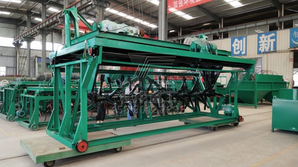 查看 > 20 2020/11由于該豬糞秸稈有機(jī)肥料生產(chǎn)線產(chǎn)量較大,因此分為多車裝置運(yùn)輸。主要的豬糞加工設(shè)備有:大型秸稈粉碎機(jī)、履帶式翻堆機(jī)、臥式攪拌機(jī)、新型三合一造粒機(jī)、不同型號(hào)的滾筒篩分機(jī)以及多個(gè)型號(hào)的烘干冷卻設(shè)備。滾筒烘干設(shè)備風(fēng)頭以及風(fēng)機(jī)安置熱風(fēng)爐以及冷卻設(shè)備多個(gè)烘干冷卻設(shè)備履帶式翻堆機(jī)以及大型秸稈粉碎機(jī)二次烘干設(shè)備滾筒篩分機(jī)以及鏟車喂料倉(cāng)本次豬糞秸稈有機(jī)肥料生產(chǎn)線工藝設(shè)計(jì)流程為:利用大型秸稈粉碎機(jī)將稻草秸稈等粉碎均勻,