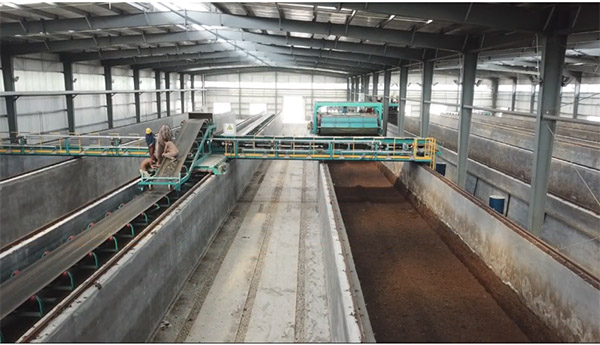 本次牛糞全套有機(jī)肥料設(shè)備生產(chǎn)工藝采用槽式好氧發(fā)酵,利用翻堆槽發(fā)酵既干凈又能最大化的利用有限的場(chǎng)地,增加糞便處理量。由于客戶對(duì)于顆粒有機(jī)質(zhì)含量以及NPK有特殊要求,因此我們?yōu)榭蛻魧iT定制了一臺(tái)三倉的靜態(tài)配料系統(tǒng)。