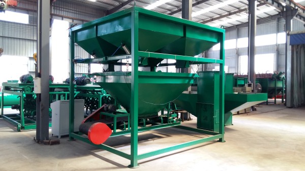 本次牛糞全套有機(jī)肥料設(shè)備生產(chǎn)工藝采用槽式好氧發(fā)酵,利用翻堆槽發(fā)酵既干凈又能最大化的利用有限的場(chǎng)地,增加糞便處理量。由于客戶對(duì)于顆粒有機(jī)質(zhì)含量以及NPK有特殊要求,因此我們?yōu)榭蛻魧iT定制了一臺(tái)三倉(cāng)的靜態(tài)配料系統(tǒng)。