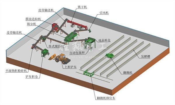 (2)傳統(tǒng)堆肥或倉式發(fā)酵該技術(shù)發(fā)酵周期長,需3~6個(gè)月。為了滿足現(xiàn)在環(huán)保生產(chǎn)的要求:無臭味、無污染,則需要添加有機(jī)肥廠除臭設(shè)備,想要快速出肥,則需要借助有機(jī)肥發(fā)酵設(shè)備,例如有機(jī)肥翻堆機(jī)。