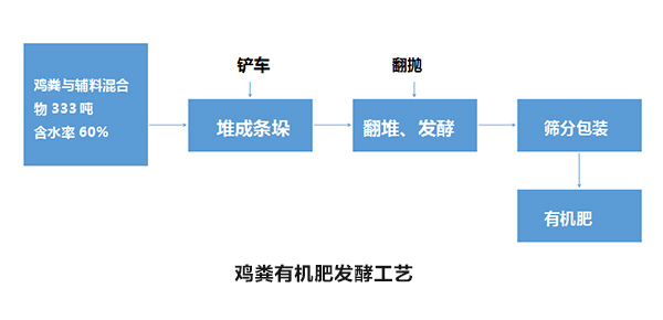 將攪拌好的雞糞、以及輔料堆砌在地面或者發(fā)酵槽中,配料堆成寬1.5米~2米、下0.8米~1米的長條堆,撒上發(fā)酵菌劑除臭、升溫,或者可以采用將發(fā)酵菌劑與一些殼糠、粉渣等輔料,充分混合之后,再進行好氧發(fā)酵堆造。切記:將配好的混雜料喂進臥式攪拌機中舉行攪拌,攪拌一定要勻、要透,沒有留死塊。堆造2~3天后料堆的溫度可達60攝氏度~80攝氏度,殺死大腸桿菌、蟲卵等病蟲害;之后雞糞的臭味逐漸消除了;堆肥變得松散