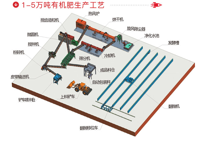 年產(chǎn)1~5萬(wàn)噸的標(biāo)準(zhǔn)有機(jī)肥生產(chǎn)線配套設(shè)備現(xiàn)場(chǎng)規(guī)劃圖