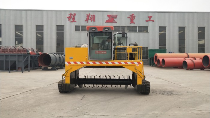 條垛翻堆作業(yè)建議采用專業(yè)的翻堆機,替代高強度人工翻堆或鏟車翻堆。機械化高效連續(xù)翻堆作業(yè)可顯著改善三角形或梯形料堆的通風(fēng)供氧,從而加快物料發(fā)酵腐熟和去除水分。該翻堆機一般應(yīng)具有破碎、攪拌、翻拋和堆垛功能。其結(jié)構(gòu)特點表現(xiàn)為:翻拋滾筒可液壓升降,便于調(diào)節(jié)地隙;滾籬螺旋葉片可拆卸,維修更換便捷;采用液壓馬達驅(qū)動履帶,附著力好,接地比壓小,地面通過能力強;采用履帶行走占地少,轉(zhuǎn)彎靈活,可以原地掉,提高物料堆放場地利用率。