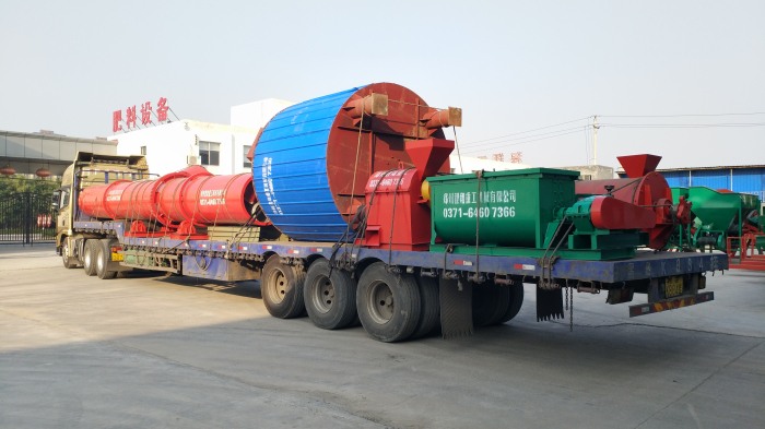 有機肥發(fā)酵處理設(shè)備:滾筒烘干機、冷卻機以及槽式翻堆機發(fā)貨